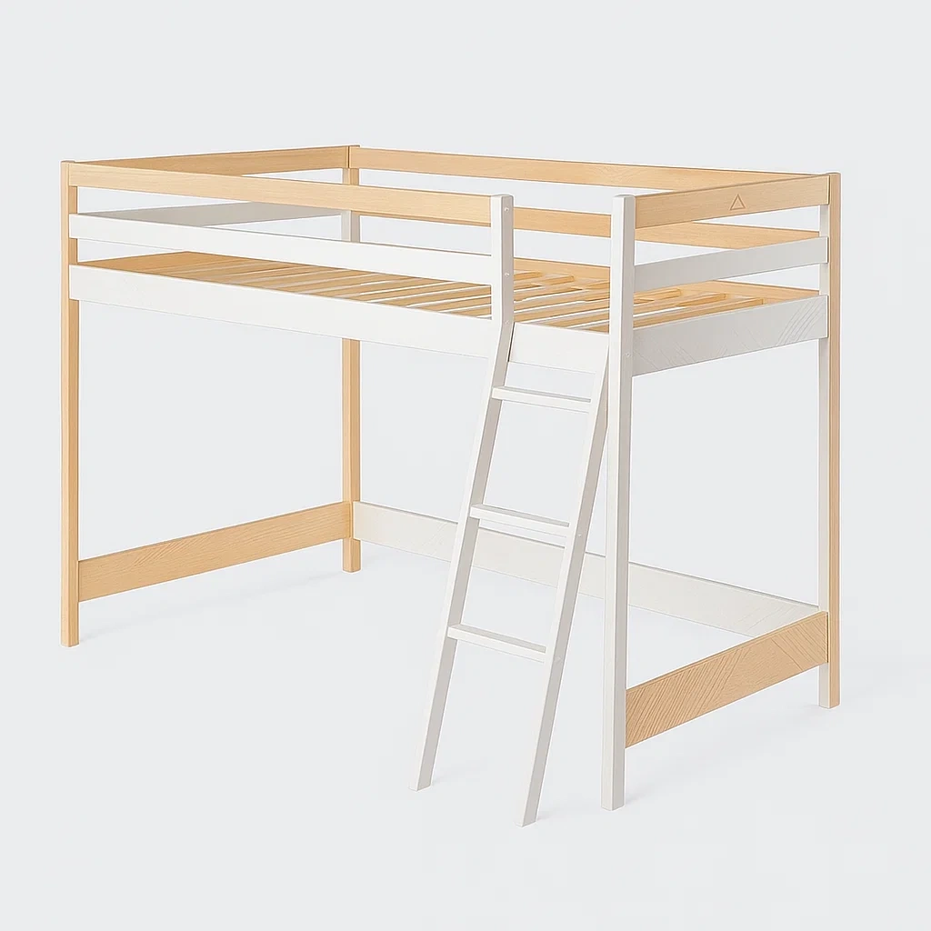Letto a soppalco in legno con scala